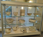 - vitrine met keramieken schalen en potten